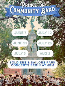 July 5 – Princeton Community Band, Soldiers & Sailors Park, 6 pm. Bring a lawn chair.